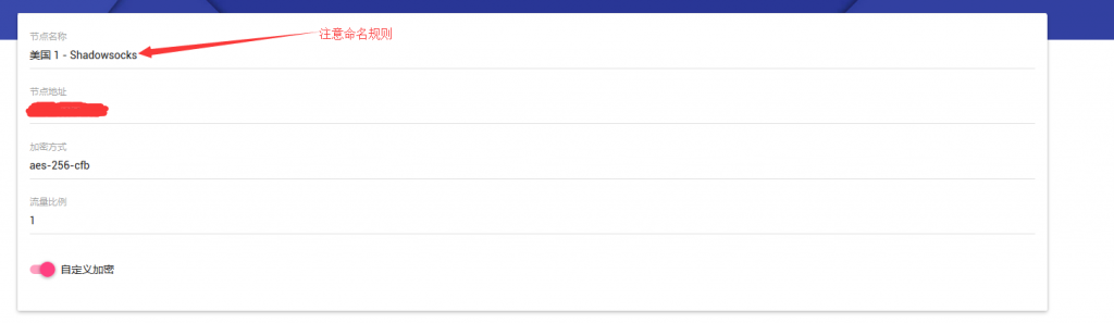 同VPN,也是Radius验证,首先要添加一个类型1 VPN节点,以便使用Radius验证,然后在面板里添加节点和和VPN差不多,就是类型要填3,同时地址要这样填节点域名:端口。