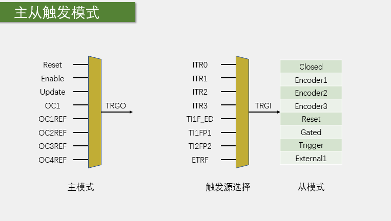 从模式可以接收其他外设或自身外设的一些信号,用于触发自己的一些操作(定时器的运行);