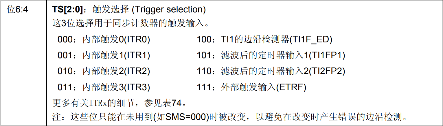 在从模式下,可以通过触发源选择功能选择一个信号产生TRGI信号,之后去触发从模式,从模式可以在上面列表中选择一项操作来自动执行。关于主从模式的详细说明可以参见手册。