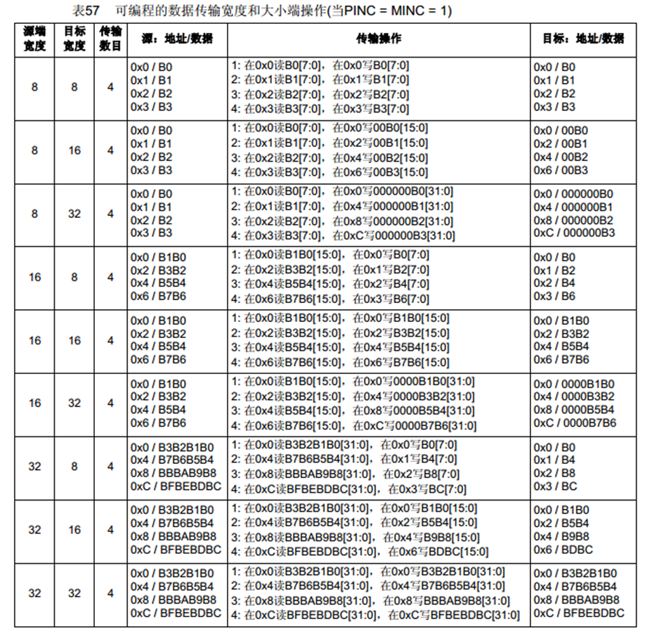 当目标数据宽度<源端数据宽度,比如由16位转到8位去,现象就是读b1 b0 只写入b0,读b3 b2 只写入b2 。也就是把多出来的高位舍弃掉,之后的各种情况也都是类似的操作,