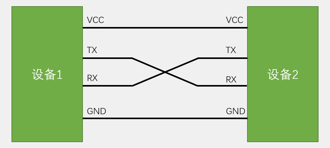 TX与RX要交叉连接TX是发送,RX是接收,那肯定得是一个设备的发送 接 另一个设备的接收,一个设备的接收 接 另一个设备的发送,这样来接线。