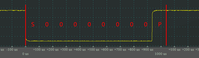 如果发送0x00 就是八个零,那波形就是,起始位,八个零,停止位,置回高电平。